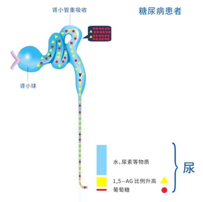 (2)1,5-AG與葡萄糖在腎小管內(nèi)競爭性重吸收。正常?尿液中1,5-AG含量少,血液中濃度相對穩(wěn)定。