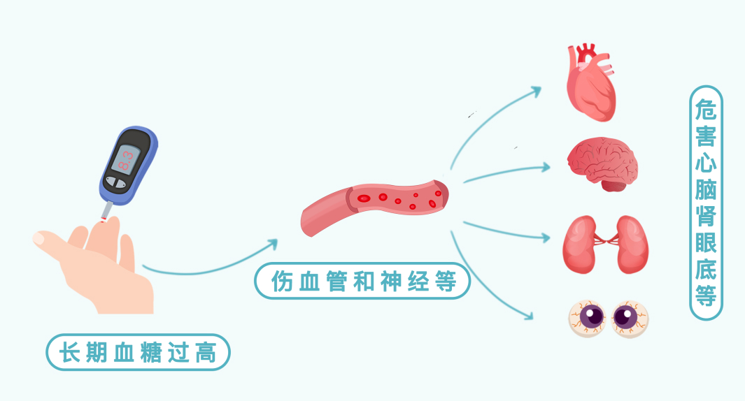 雖然高血糖不完全等于糖尿病,只是一種血糖監(jiān)測(cè)結(jié)果的判定,但長(zhǎng)期高血糖將會(huì)造成糖尿病,且會(huì)引發(fā)相關(guān)并發(fā)癥的產(chǎn)生,造成相應(yīng)器官損害,如發(fā)生糖尿病腎病、糖尿病視網(wǎng)膜病變、糖尿病神經(jīng)病變、糖尿病足等。(關(guān)于這些并發(fā)癥的危害,有興趣可去看這篇文章“隱藏殺手”——糖尿病并發(fā)癥)