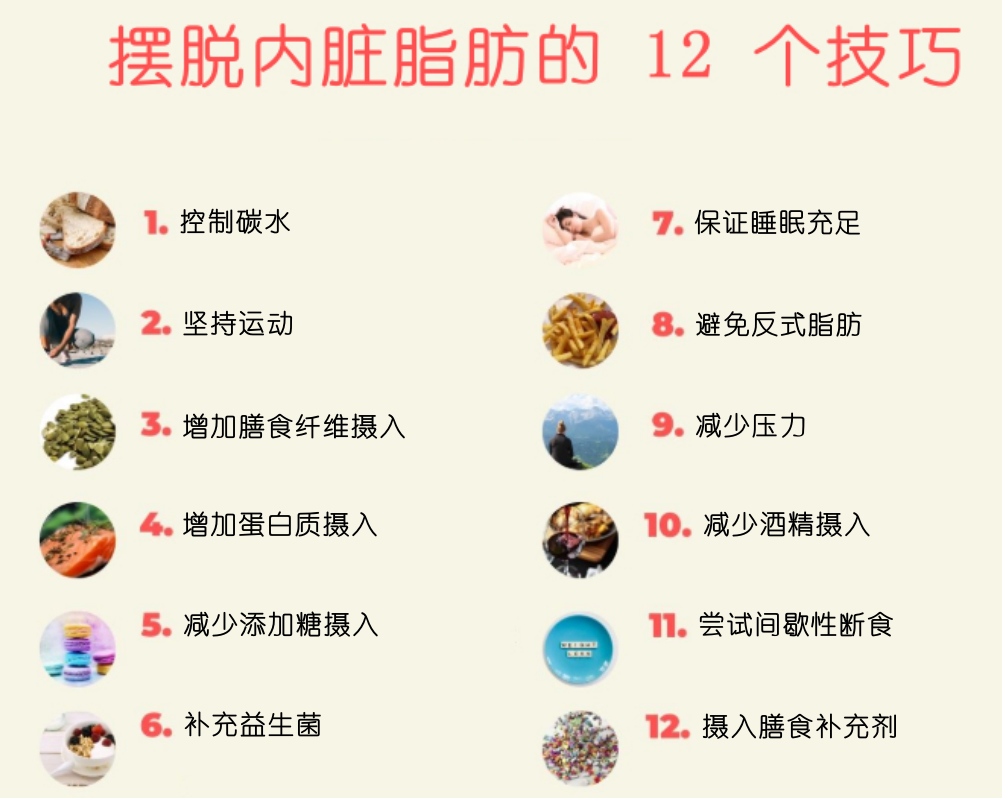 除上述方法外,減少添加糖的收入、增加蛋白質(zhì)攝入、減少壓力、避免吸煙喝酒、同時(shí)保持良好的作息習(xí)慣、保證足夠的睡眠和休息等生活方式對(duì)內(nèi)臟脂肪的減少都很有幫助。生活方式是基礎(chǔ),也可搭配定期體檢來(lái)進(jìn)行干預(yù),了解自身體內(nèi)激素水平,有針對(duì)性的進(jìn)行治療,可大幅提升效率哦!