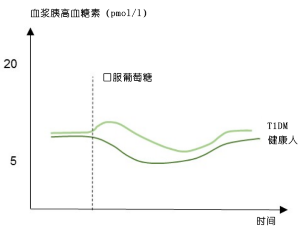 2)1型糖尿?。═1DM)患者中的胰高血糖素