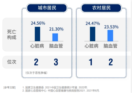 目前,我國心血管病患病率處于持續(xù)上升階段,據(jù)推算我國CVD現(xiàn)患人數(shù)3.3億,其中腦卒中1300萬,冠心病1139萬。
