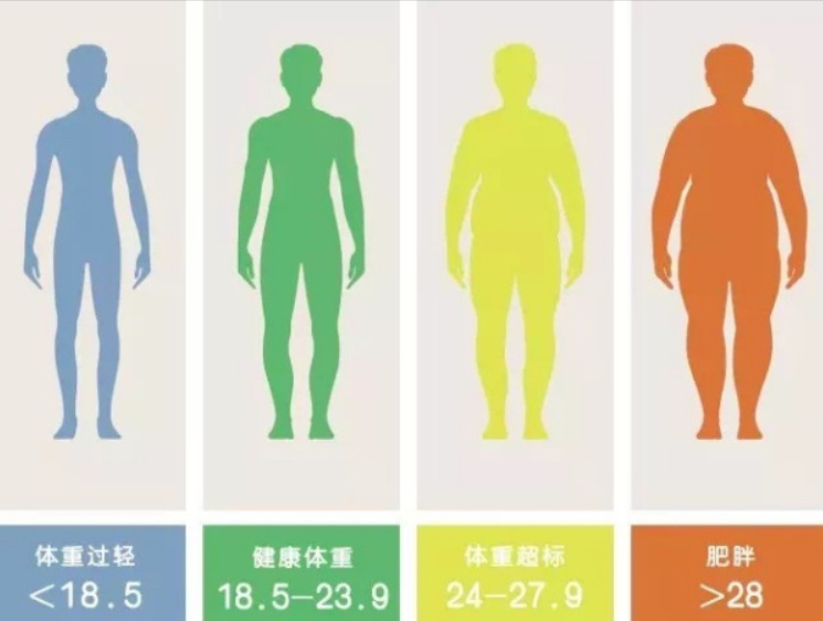 建議每年一次或多次計算體質(zhì)指數(shù)(BMI),BMI=體重(公斤)/身高(米)2。BMI的理想范圍為18.5~23.9,≥24.0為超重,≥28為肥胖。