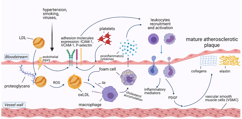 正如上文介紹LDL時(shí)所提到的,ox-LDL是LDL的氧化形式,在泡沫細(xì)胞形成中起著關(guān)鍵作用,其可誘導(dǎo)炎癥和細(xì)胞毒性作用,在動(dòng)脈粥樣硬化的最早期出現(xiàn),參與AS形成的多個(gè)環(huán)節(jié),貫穿了疾病的始終,是動(dòng)脈粥樣硬化的關(guān)鍵啟動(dòng)因素。