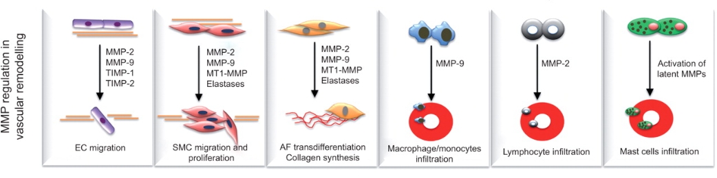 基質(zhì)金屬蛋白酶(MMP,也稱為基質(zhì)蛋白)由一大類絲氨酸內(nèi)肽酶組成,可能具有傷害性和促炎性,使纖維帽變薄和變?nèi)?,使其更容易破?/STRONG>。